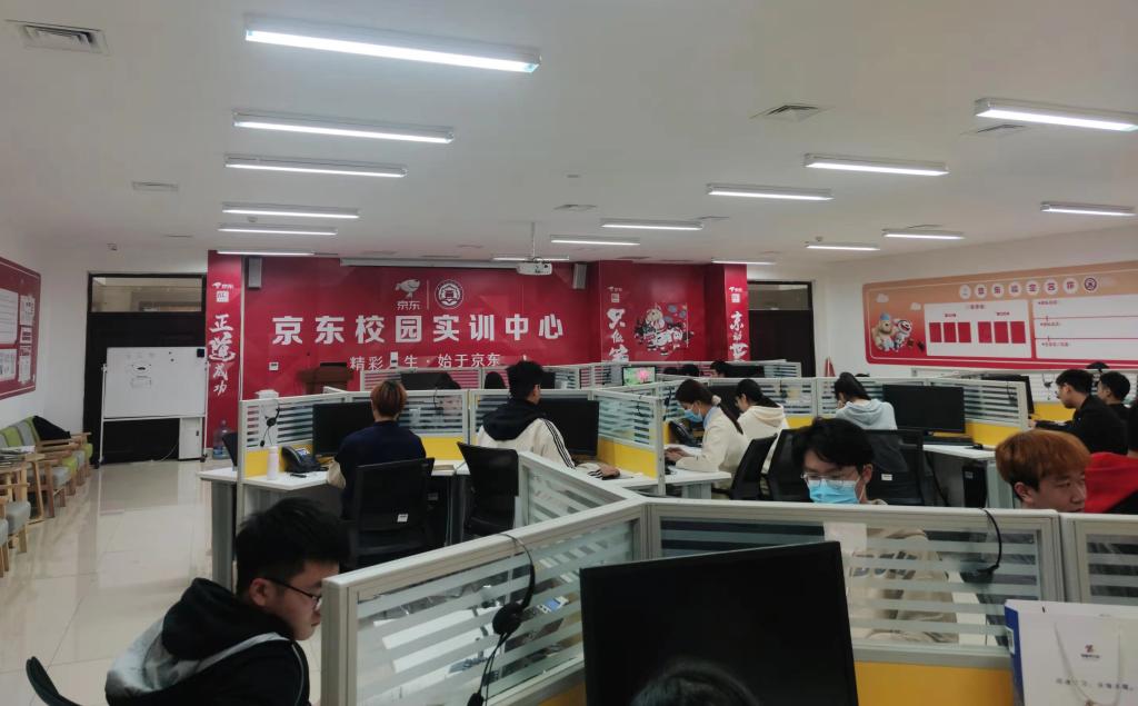 【实习实训】2017年至今,陆续建成电子商务实训室、网络营销实训室、直播电商运营中心、新媒体运营中心、商品信息采集中心及视频剪辑工作室共计11个,建筑面积合计超过1000余平方米,满足电子商务专业、网络营销专业学生实习实训的需要。2019年5月,由河南省财政厅、教育厅投资建成“京东校园实训中心”生产性实训基地,建筑面积120平方米,电脑设备48套。这是“政行企校”进行产教合作的典范,满足京东运营客服和培养应用型人才的需要。在京东校园实训中心,每学期对学生进行为期4周的 “京东实战运营月”活动。2020年11月,学校投资建设供应链思维创业仿真实训室,建筑面积110平方米,电脑设备92套,主要对学生进行可视化的供应链运营实训,年使用77人次。2021年农特品新媒体营销体验中心项目和数字商业实训项目入库申报成功。