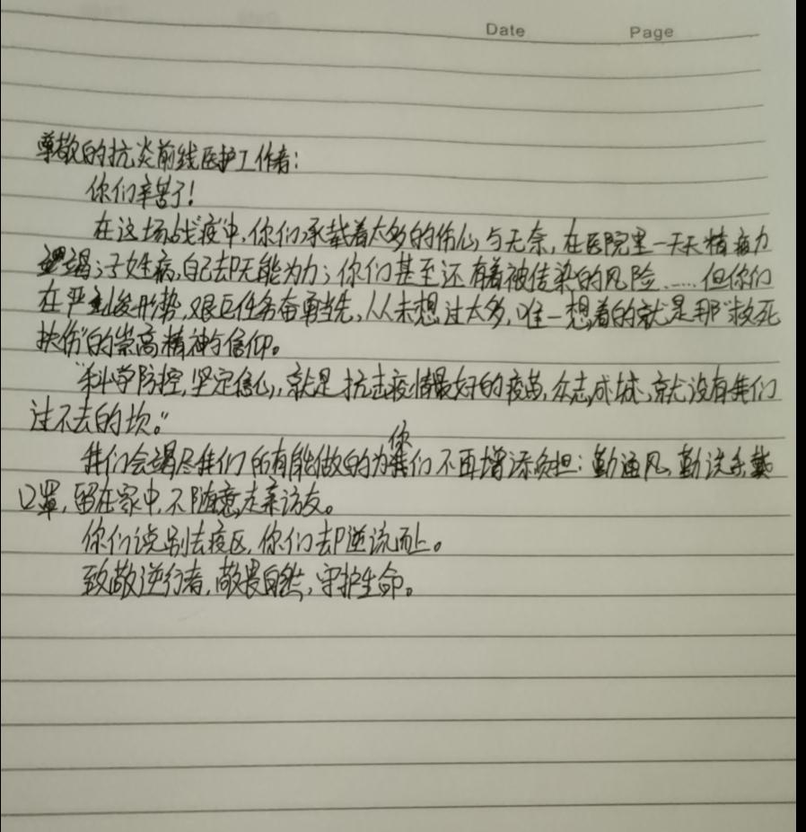 行动抗击疫情 笔尖传递力量—澳门金年会app下载官网学生向祖国送祝福