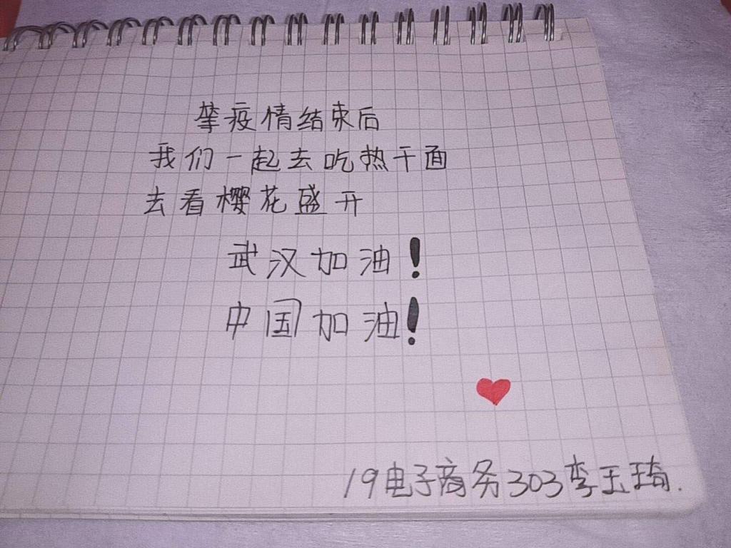 武汉是一座英雄的城市,但一场突如其来的新冠肺炎让他生病了,为了全国各地同胞们的安全,他把自己“关”了起来,安静的配合治疗。澳门金年会app下载官网的学生用笔尖拥抱武汉,满含温情写下“武汉加油,中国加油”。