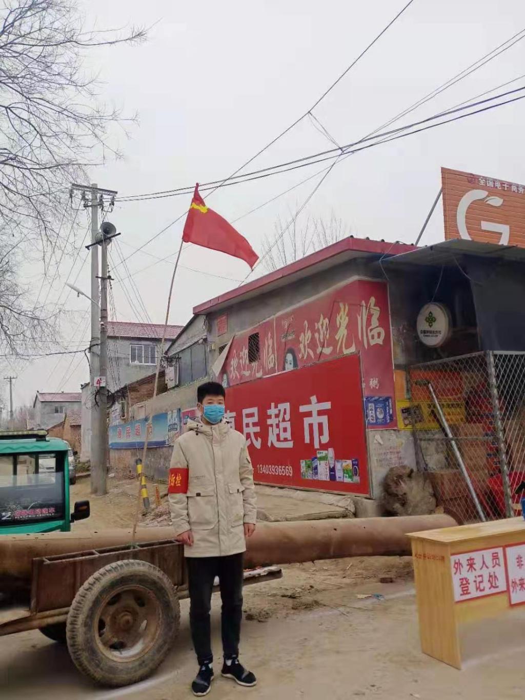 19电商技术302王继刚同学自2月6日起,在濮阳市范县安兴寺村参加疫情防护值班站岗志愿服务,在村口的劝导点执勤,负责对外来人员车辆进行登记和体温检测;同时积极帮助其它村干部在村里排查人口健康查情况。在疫情爆发严重时期,他挺身而出,为自己的家乡做出了自己的贡献,他的认真、踏实得到了村长和村民的一致好评。