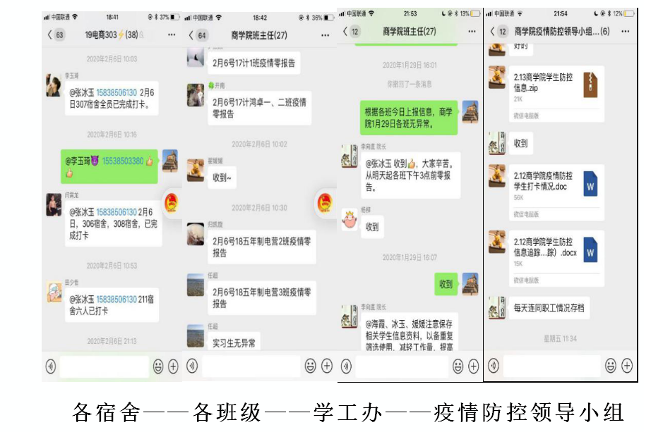 疫情发生后,澳门金年会app下载官网根据学校要求,迅速建立完善了澳门金年会app下载官网疫情防控工作专班,统筹建立起澳门金年会app下载官网四级防控体系,全体行政人员、班主任老师从休假状态进入战时状态,建立澳门金年会app下载官网疫情防控领导小组—学工办—班级—宿舍网格化管理体系,采取“网格化”“单元化”“人盯人”的办法,落实责任,实现上下联动,每日关注疫情数据、摸排学生信息、上报统计数据、开展宣传教育、向学生答疑解惑、传递正能量,牢牢筑起学生防控的四道防线。