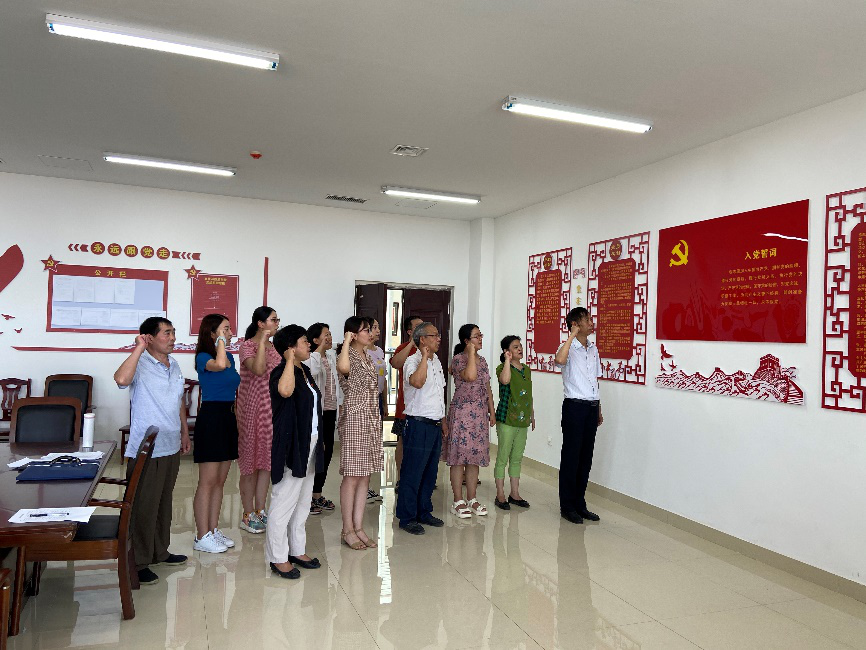 活动由重温入党誓词开始,在李向直的带领下,澳门金年会app下载官网党总支全体党员面对庄严的党旗重温了入党誓词。通过重温誓词,让总支的党员同志们牢记入党时的庄严承诺,牢记对党和人民立下的誓言,提醒我们不忘初心,以合格共产党员的标准砥砺前行,发挥模范带头作用。
