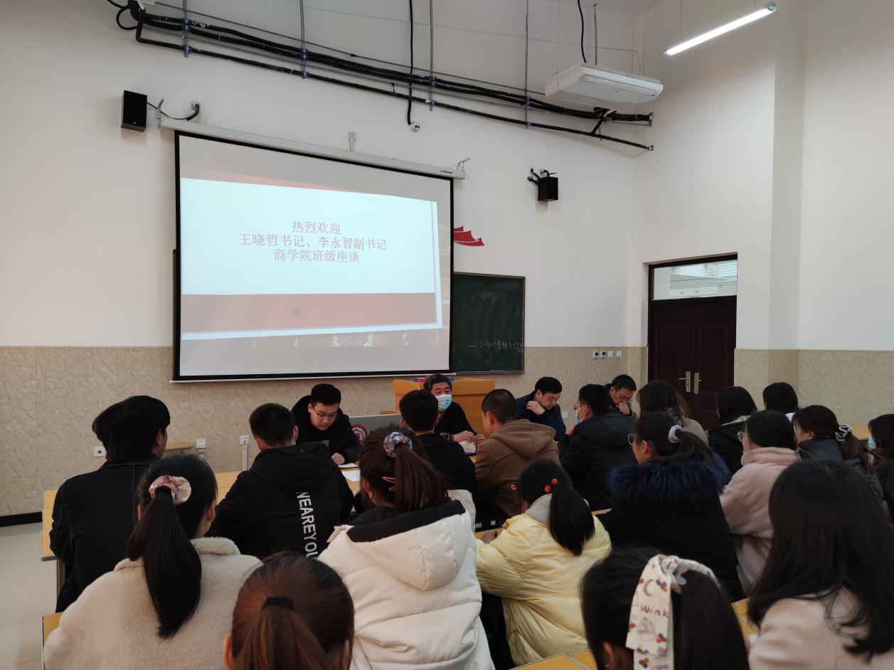 12月4日下午,学院纪委书记、监察专员王晓哲在伊滨校区2号楼402教室与20级电子商务301班、20级市场营销301班同学进行调研,纪委副书记李永智陪同调研。