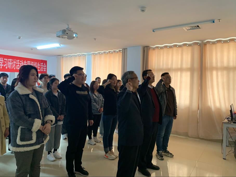 王军华带领教工党员代表重温入党誓词,铿锵恢宏的誓词,体现了党员同志们对中国共产党的无限忠诚,坚定了入党使命,奋斗初心。学生入党积极分子在氛围的渲染下深深感受到党员的责任、使命、荣耀,提前领悟到中国共产党庄严而神圣的使命,加深了对一名合格共产党员基本素质的理解,纷纷表示要在今后的工作中,时刻以党员的标准严格要求自己,时刻以党员的先进性鞭策自己,爱党爱国情怀充分得到提升。