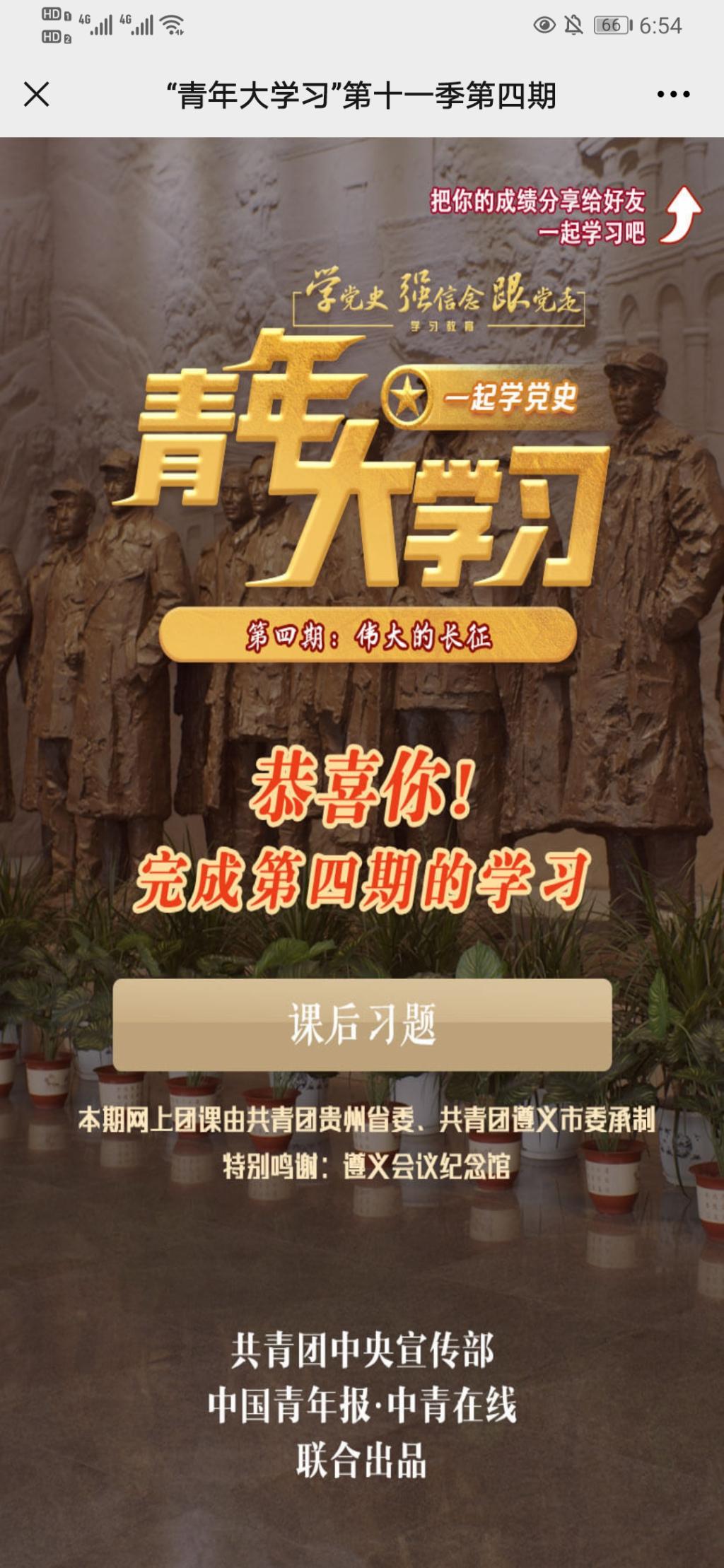 本次团课结束后,各班团支书组织本班学生学习青年大学习第十一季第四期。