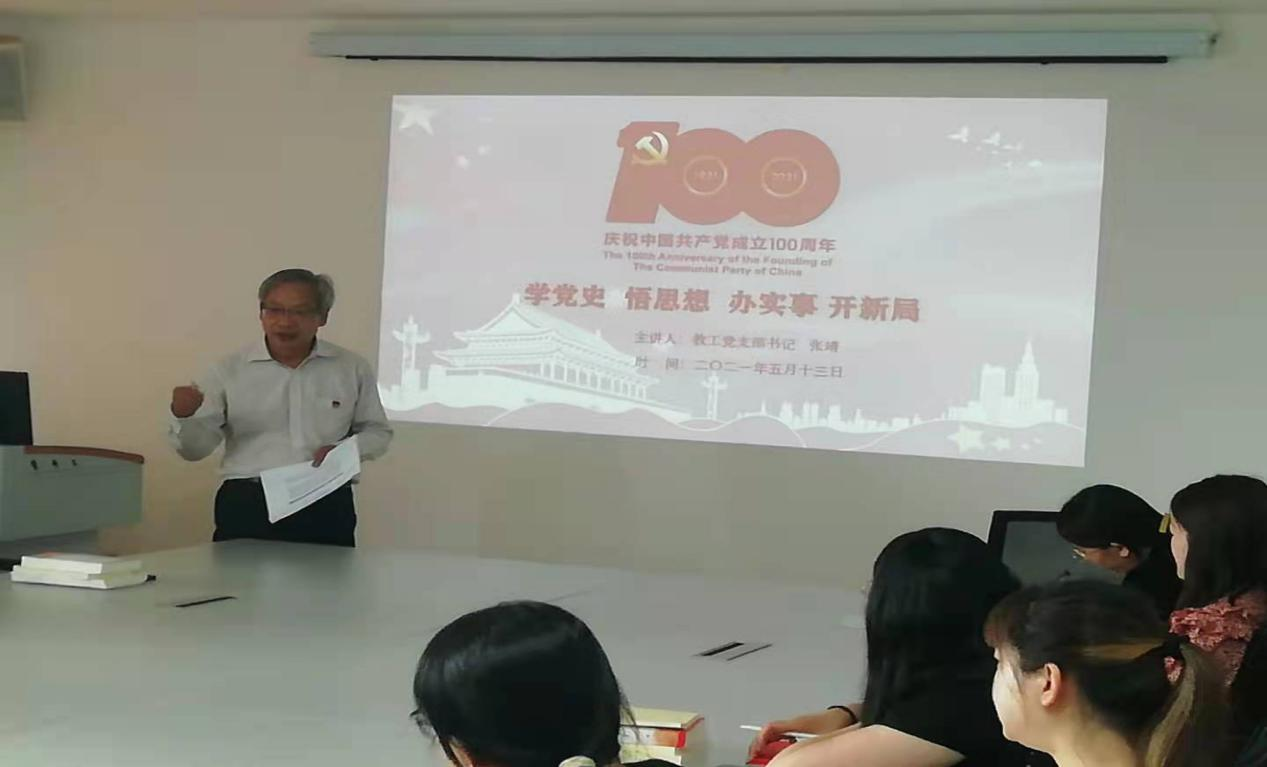 5月13日下午,按照学院党委学党史活动和澳门金年会app下载官网党总支的要求,澳门金年会app下载官网组织全体教职工在大学生活动中心四楼会议室开展党史学习教育活动,由教工党支部书记张靖讲党课——“学党史、悟思想、办实事、开新局。”