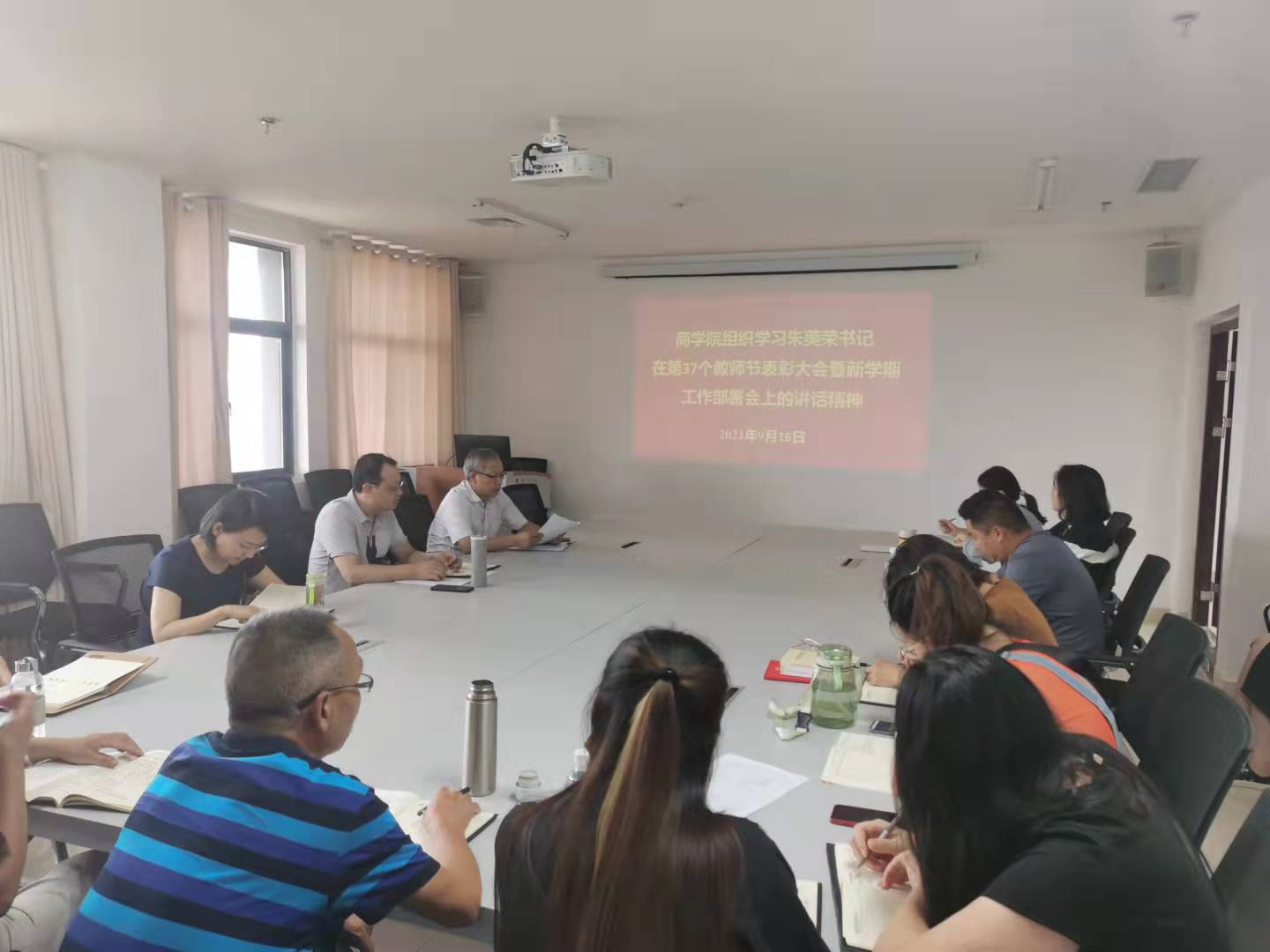 会上,王军华、澳门金年会app下载官网副院长张靖分别领学了党委书记朱美荣、院长赵健在第37个教师节表彰大会暨新学期工作部署会上的讲话精神。