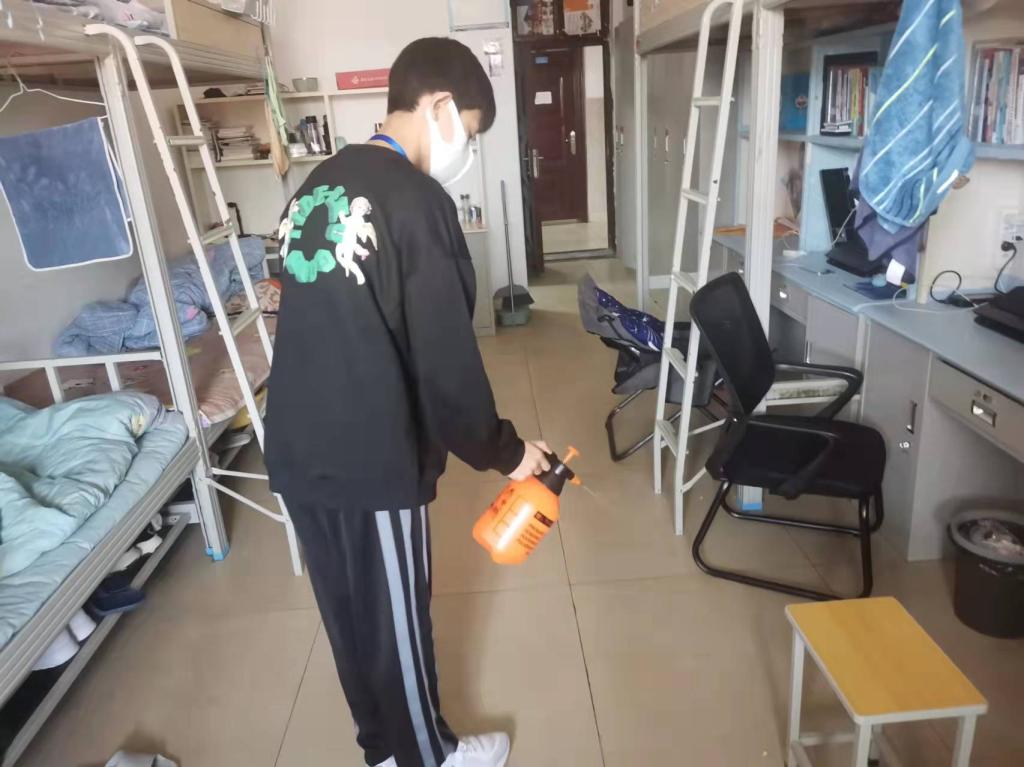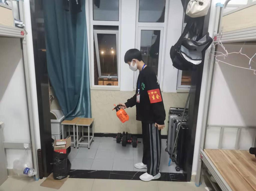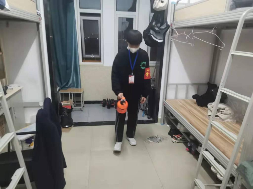 近期国内疫情呈现点多、面广、频发态势,各地防控政策进一步收紧。为给同学们一个放心、安全、健康的校园环境,澳门金年会app下载官网权益保障部在3月16日晚组织宿舍消杀工作。