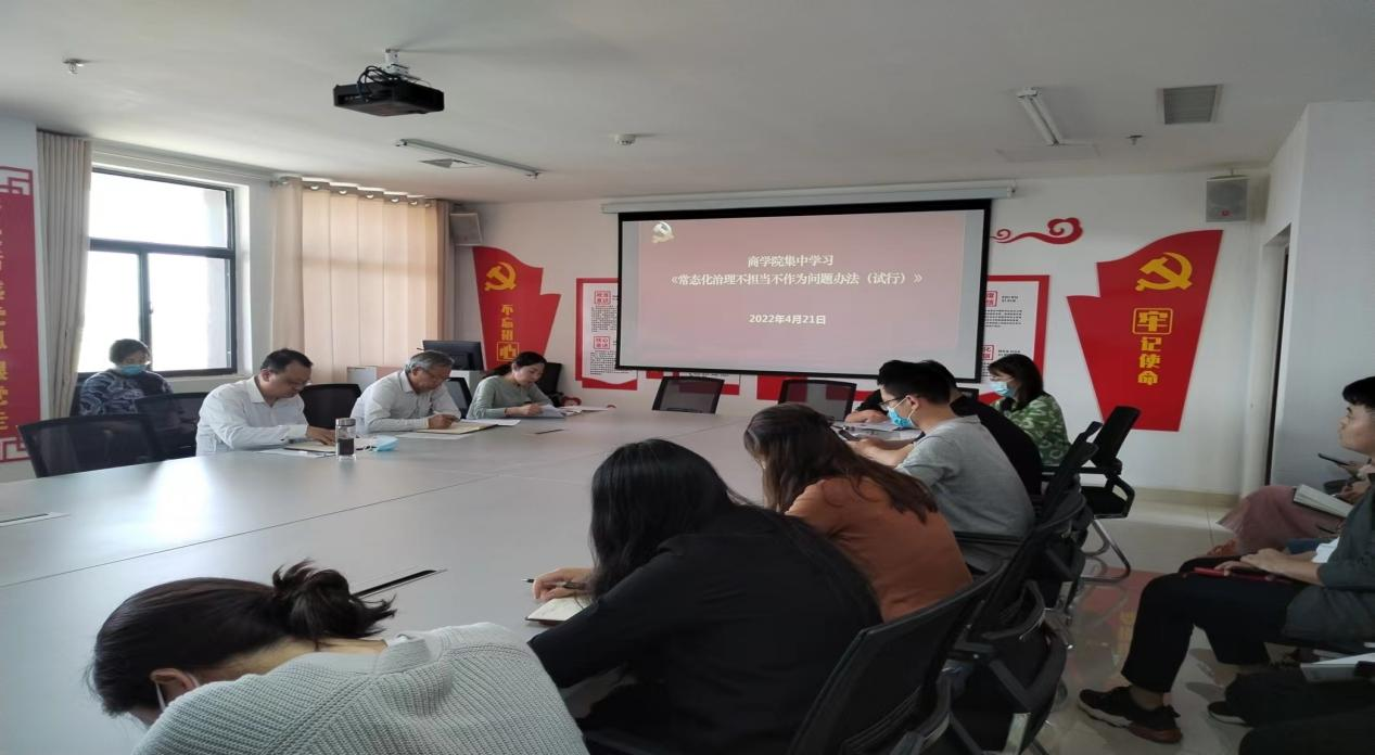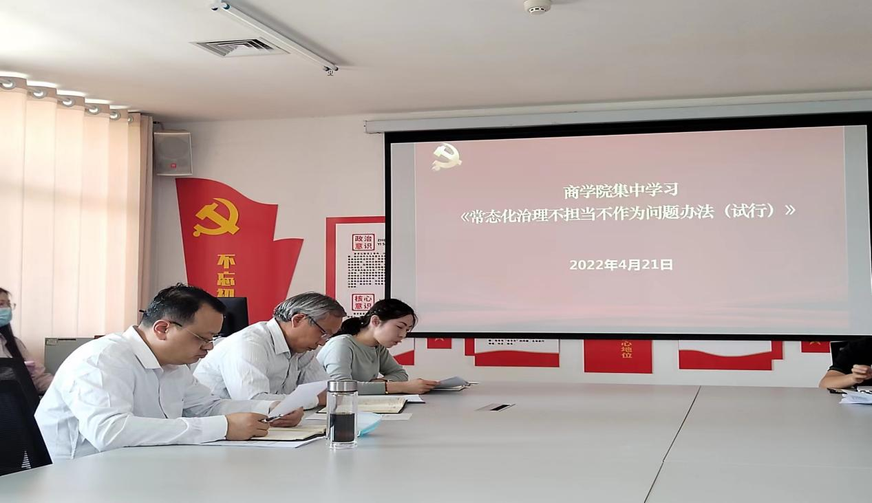 4月21日下午,为激励澳门金年会app下载官网全体教职工担当作为,同时治理不担当不作为问题,澳门金年会app下载官网组织全体教职工在大学生活动中心四楼会议室集中学习学校《常态化治理不担当不作为问题办法(试行)》,此次学习由澳门金年会app下载官网党总支副书记李双双领学。