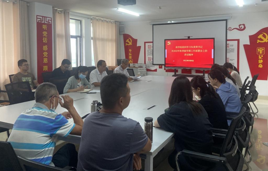 会上,王军华首先向全体教职工致以节日的祝福。随后,王军华、澳门金年会app下载官网副院长张靖分别领学了学校党委书记朱美荣和院长赵健在2022年秋季新学期工作部署会上的讲话精神。
